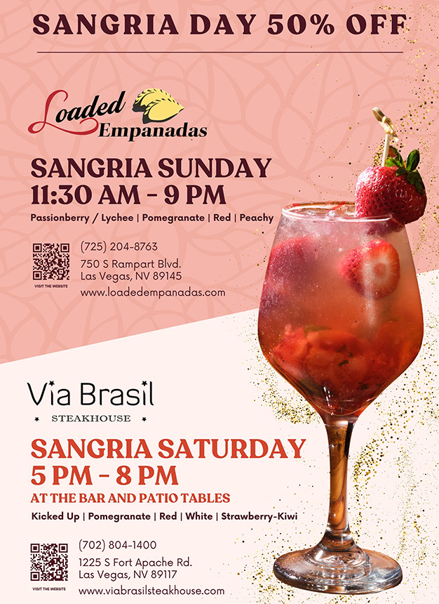 Sip and savor Sangria Sundays at Loaded Empanadas in Summerlin! Enjoy refreshing house-made sangrias all day long in a laid-back, flavorful atmosphere. The perfect way to wind down your weekend! Read More